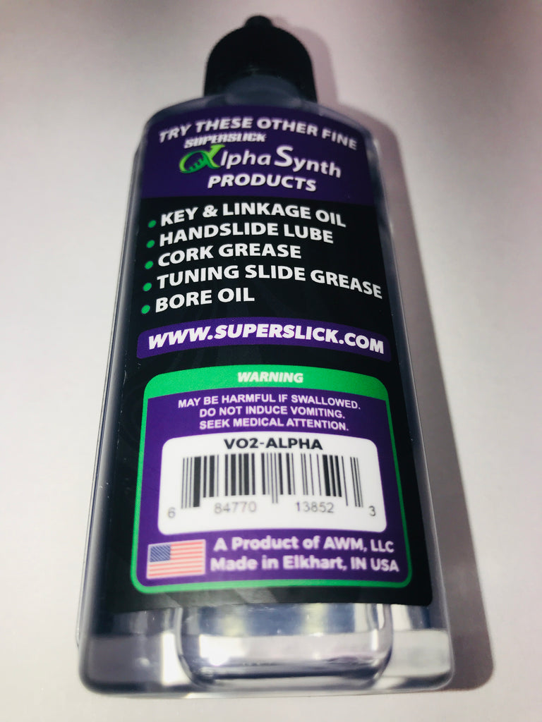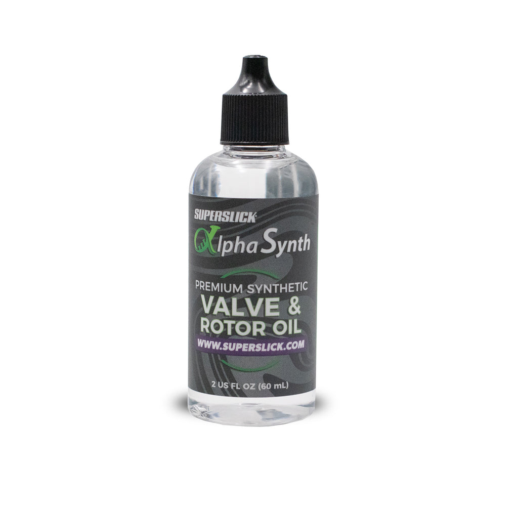 Superslick’s AlphaSynth Valve & Rotor Oil is the perfect balance between odorless high-quality synthetic lubricants and a synthetic solvent, blended to a light viscosity. This unique balance cleans the valve or rotor while lubricating so that the player can keep on playing! The lubricant also will not stain and has a high resistance to oxidation. Most importantly, AlphaSynth is completely safe for classroom use. Convenient 2 oz. (60 mL) size. Made in Elkhart, Indiana, USA.